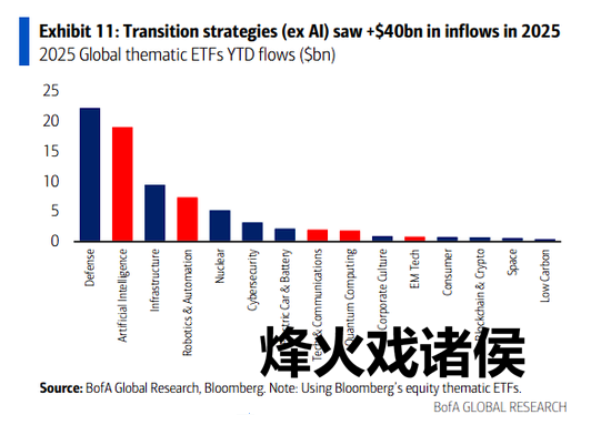 研报称,即便AI热潮冷却,电网升级和国防开支的刚性需求依然存在。事实上,剔除AI后的转型策略在2025年已吸引了超过400亿美元的资金流入。