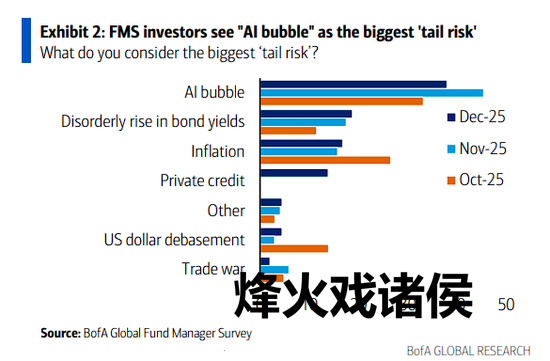 1月21日,据追风交易台消息,美银在最新的研报中称,虽然AI是一场根本性的技术革命,但估值过高和时间周期的不确定性已成为不可忽视的风险。38%的基金经理现在将“AI泡沫”视为最大的尾部风险。