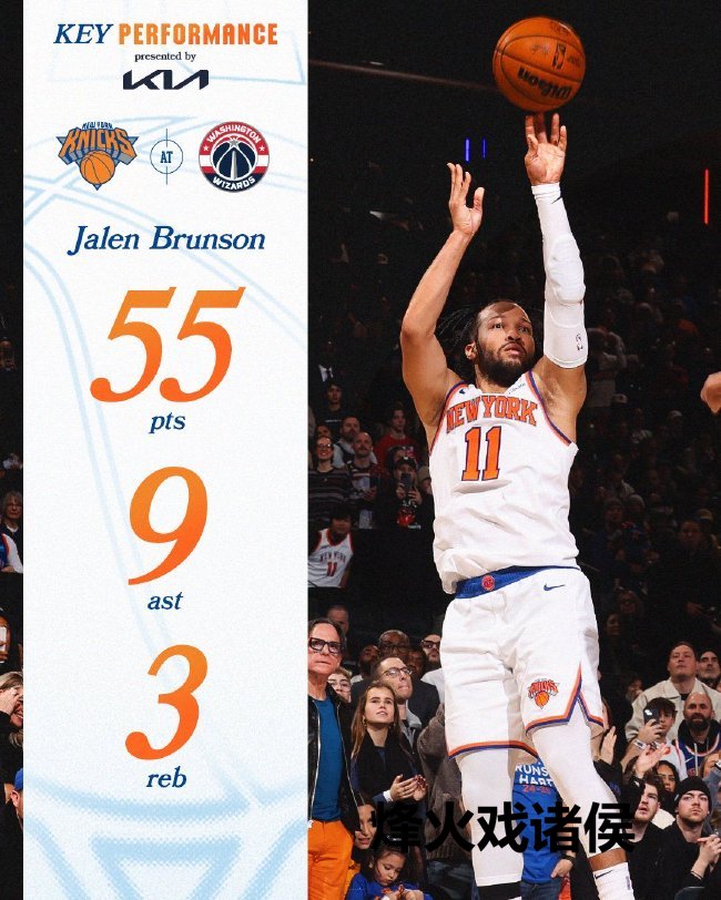 尼克斯(22-10):布伦森55分3篮板9助攻、唐斯30分14篮板3助攻、布里奇斯21分3篮板3助攻3抢断、哈特13分11篮板7助攻、阿努诺比9分4篮板