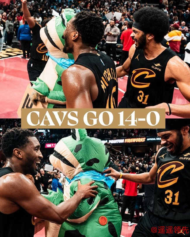 骑士轻松取胜豪取开季14连胜,成为NBA历史上第6支至少以14-0开局的球队。