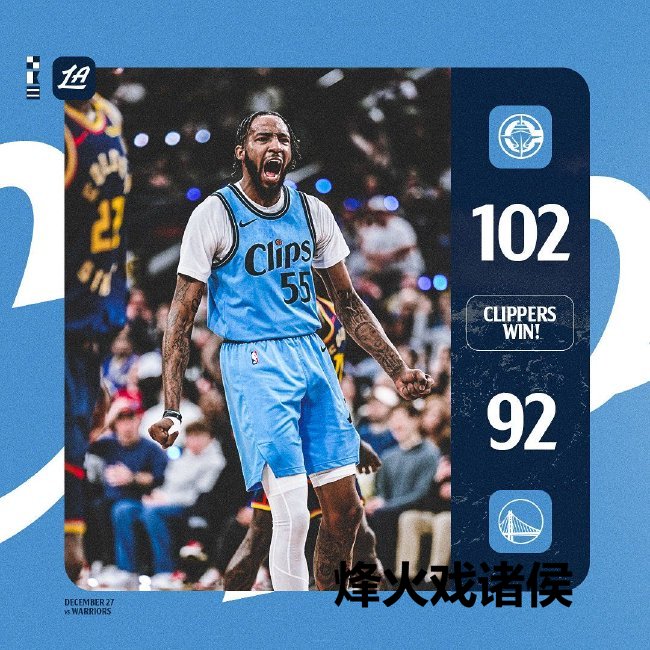 北京时辰12月28日,NBA惯例赛,快船102-92力克硬汉,硬汉碰到2连败跌至西部第九。